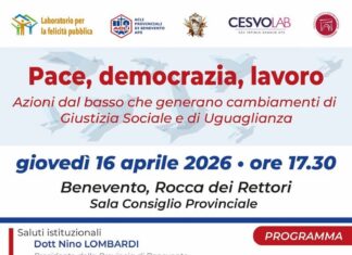 “Pace, democrazia, lavoro. Azioni dal basso che generano cambiamenti di Giustizia Sociale e di Uguaglianza”. È il titolo dell’incontro in programma giovedì 16 aprile...